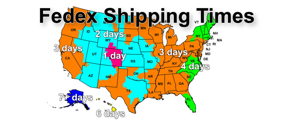 Use this map to determine when your order will ship from our warehouse in Colorado. The Pickup Date you choose at Checkout is when your order will leave the GMC.